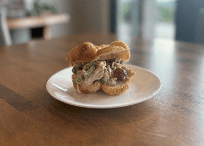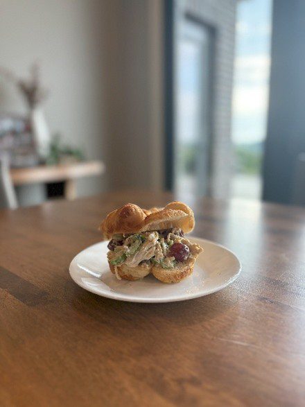 - In a large bowl, add the chopped chicken, celery, green onion, and grapes.